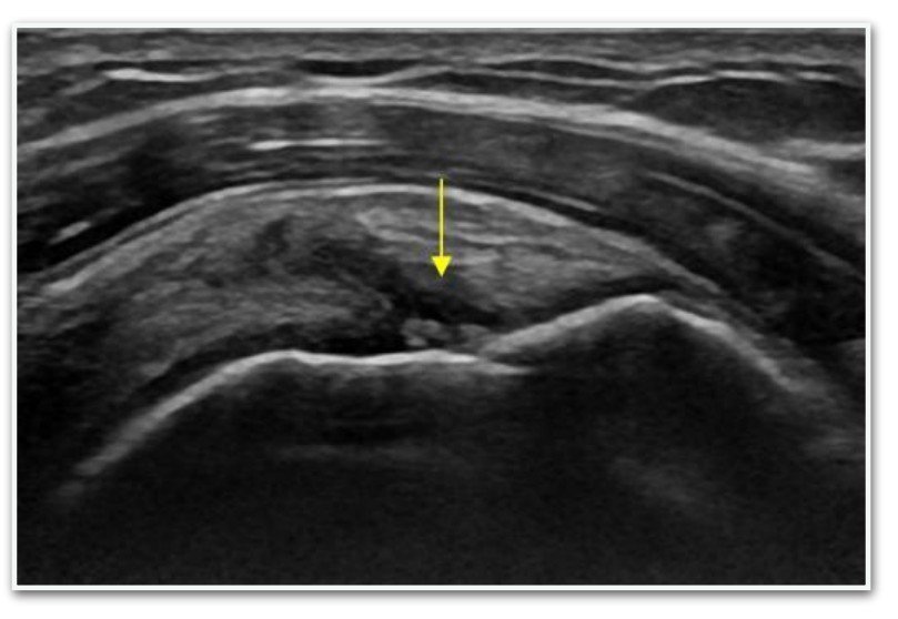 2. Pav. Rotatorių manžetės dalinis plyšimas (echoskopinio tyrimo vaizdas)