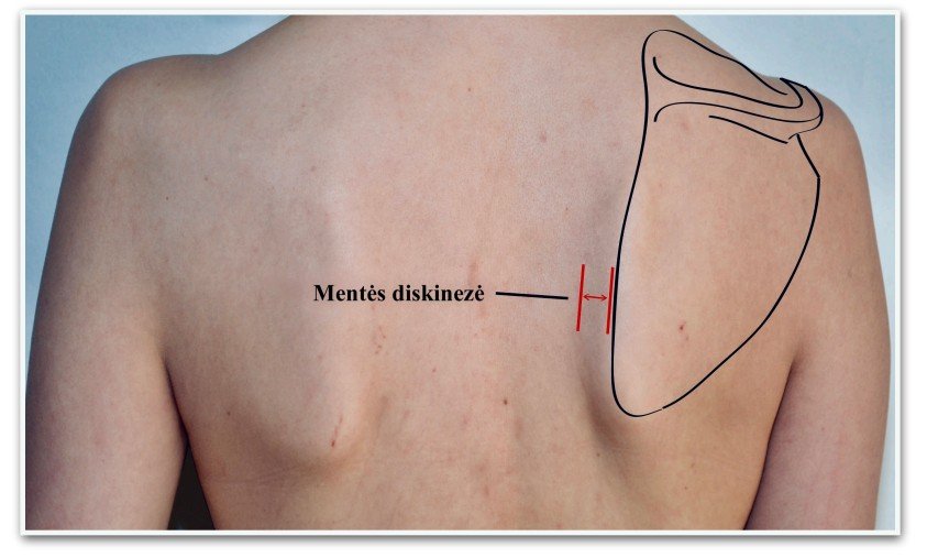 gulint ant pažeisto peties. - Sumažėjusi judesių amplitudė, juntamas raumenų jėgos silpnumas atliekant rankos kėlimo